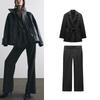 Spring New Arrival Women's Pleated Wide Leg Pants 9109591 with Padded Shoulder Double Breasted Suit Outwear 9115591
