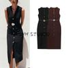 Summer New Product Women's Clothes Decorated Row Button with Belt Crepe Sleeveless round Neck Midi Skirt Dress 3897054