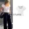Spring and Summer New Women's Clothing French Style Casual round Neck Loose Bell Sleeve Shirt A- line Tops