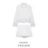 Kaslead New Women clothes Western Style Fashion Simple Lace Stitching Lace-up Shirts Set