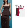 Fall and Winter New Women's Clothing French Design Sleeveless Halter Gold Inlay and Bow Tie Tops 4938106