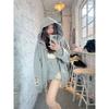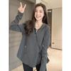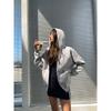 Kumikumi Idle Style Gray Elegant Chic Hooded Long Sleeve Sweater Women Fall Loose Versatile Casual Top