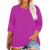 Women's Solid Color Round Neck Plus Size Tops 3/4 Sleeves Elegant Shirt Tops