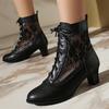Women's Costume Cosplay Shoes Retro Mid Calf Boots Burnout Kitten Heels Front Bandage Patchwork Boots