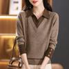 Autumn and winter new fashionable versatile age-reducing thin lapel with long-sleeved knitted pullover sweater for women