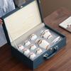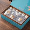 Suet jade kung fu tea set hand-painted cover bowl gold opening event real estate business souvenir