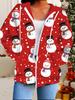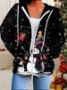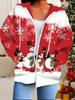 Christmas 3D Printed Hooded Cardigan Plus Size Autumn Winter Retro