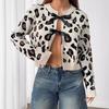 New In Leopard Print Round Neck Lace-up Knitted Cardigan Women Autumn Winter Trendy Streetwear Sweater Coats