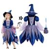 Kid Girls Halloween Witch Costume Sparkly Silver Stars Printed Carnival Cosplay Dress with Pointed Hat Wand Dress Up Clothes
