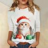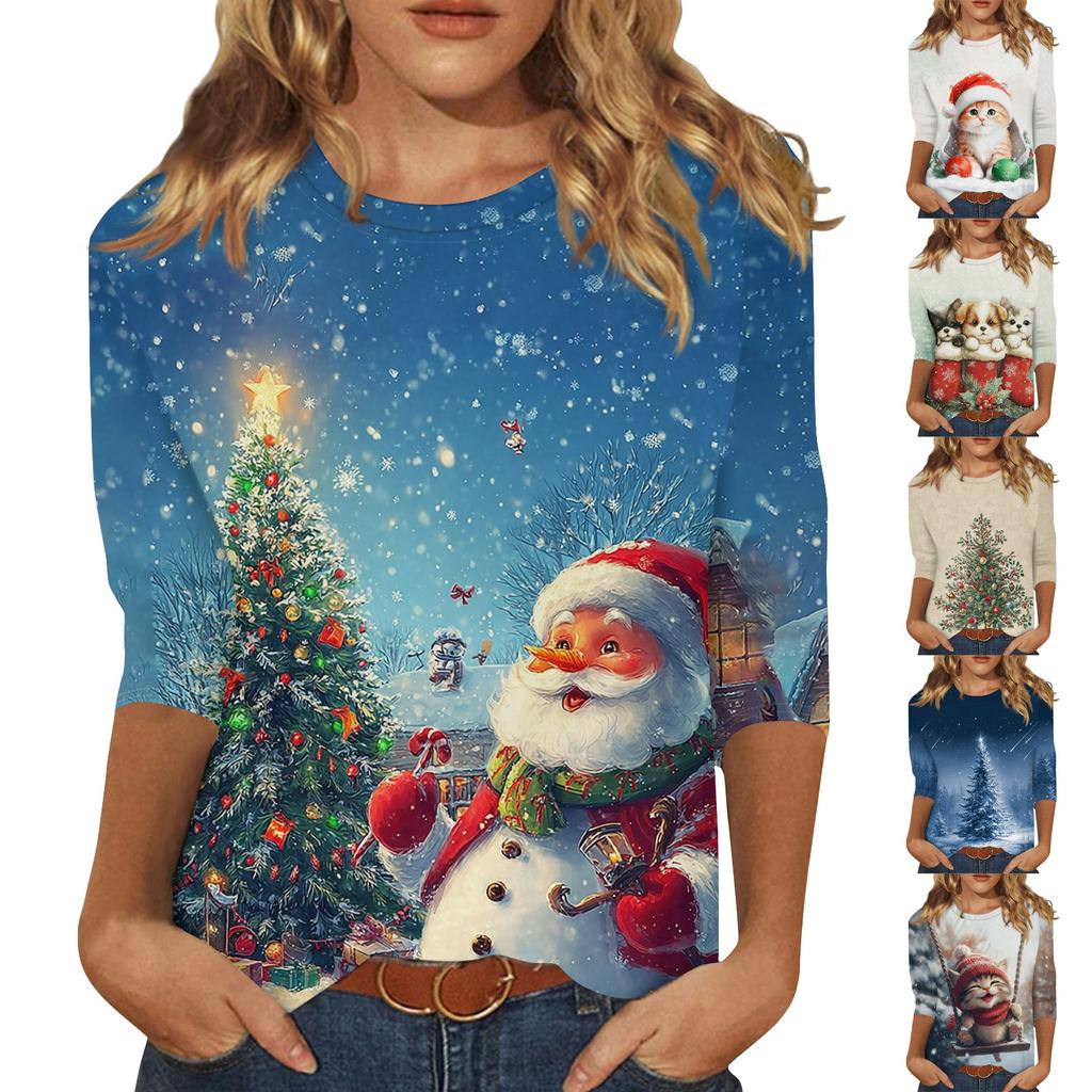 Women's Fashion Casual Christmas Printed Round Neck Long Sleeve Pullover Top