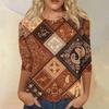 Women's Fashion Casual Round Neck Three-quarter Sleeve Retro Floral Print T-shirt Top