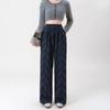 New Spring Autumn Retro Jacquard Casual Wide-leg Pants Women in Autumn High Waist Loose Elastic Waist Straight Pants