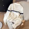 A New Loose and Laid-back Women's Autumn and Winter Sweater with A Contrasting Color Striped POLO Collar and Long Sleeves