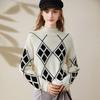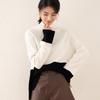 TUHUANG Women's Pure Wool Color Block Crew Neck Pullover Sweater