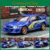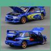 The 1:32 scale Subaru WRX Race Track Edition die-cast car model features a durable alloy construction, measuring approximately 5.9 inches in length. It includes realistic light and sound effects, with a 60-piece design that supports inertia-controlled movement and steering. Ideal for display or active play during racing scenarios, it requires gentle wiping with a damp cloth for maintenance.