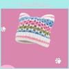 Cat Ear Playful Hand Knitted Beanie Hat For Women Charming Striped Design Perfect For Autumn And Winter Fashion