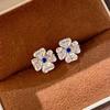 Korean Style Four-Leaf Clover Zircon Stud Earrings in S925 Sterling Silver & 18K Gold
