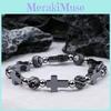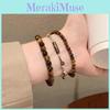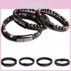 Double 21cm Men Layered Volcanic Stone Beaded Bracelet Alloy Clasp Leather