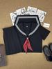 Red Triangular Sailor Uniform Scarf with Embroidery and Large Bow Tie - Japanese Academy Style