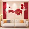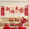 Groom & Bride Wedding Room Decor Set: Double Happiness Banner for New Home Living Room TV Wall