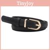 This women's leather dress belt features a polished finish and an adjustable fit, combining style with functionality. Crafted from genuine two-layer cowhide leather, it measures 105cm long with a slim width of less than 2cm, and includes a durable alloy pin buckle. Ideal for formal occasions or office wear, it adds a refined touch. Wipe clean with a damp cloth to maintain its sleek appearance.