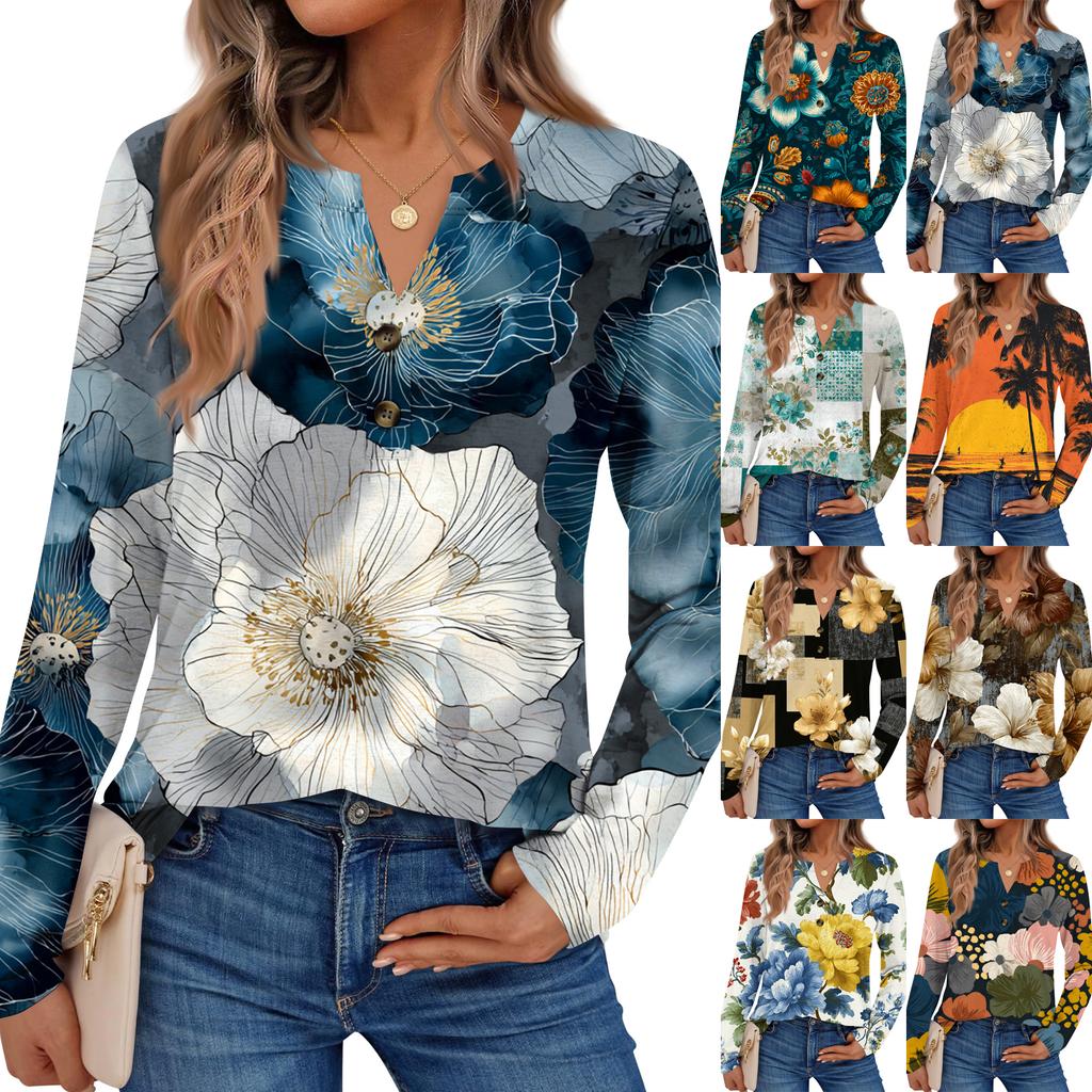 Women's Print Long Sleeve Shirts Elegant Casual Tops Trendy Shirts Tops Description: 1. [Fabric]: High-quality imitation cotton material, long sleeves for women, the overall fabric is breathable and comfortable, smooth and comfortable, and very comfortable to wear all day. 2. [Style]: Women's shirt tops, casual tops, loose cut, comfortable fabric, fashionable women's shirts suitable for work, vacation, beach, school, outings, parties, home and daily wear. 3. [Matching]: In spring and summer, it can be matched with leggings, jackets, jeans, cropped pants, trousers or skirts, which is more elegant and feminine. 4. [Size]: The fabric of this product is elastic, please carefully the size and choose carefully before purchasing. 5. [Cleaning and Care]: It is recommended to use water temperature below 30 degrees Celsius or cold water to wash to avoid fading. There may be slight color differences on different monitors, please don't mind. Product Information: Gender: Women Occasion: Casual Material: Polyester Pattern Type: Printed Style: Casual Length: Regular Long Sleeve Thickness: Standard Washing Method: Hand Wash in Cold Water, Hang or Line Dry You Will Get: 1 Women's Top