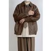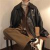 Men's Spring and Autumn Loose Retro Handsome PU Leather Jacket Solid Color Lapel Biker Wind Outerwear