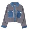 French Niche 2025 Spring-Autumn Color Block Knit Pullover Sweater with Shirt Collar