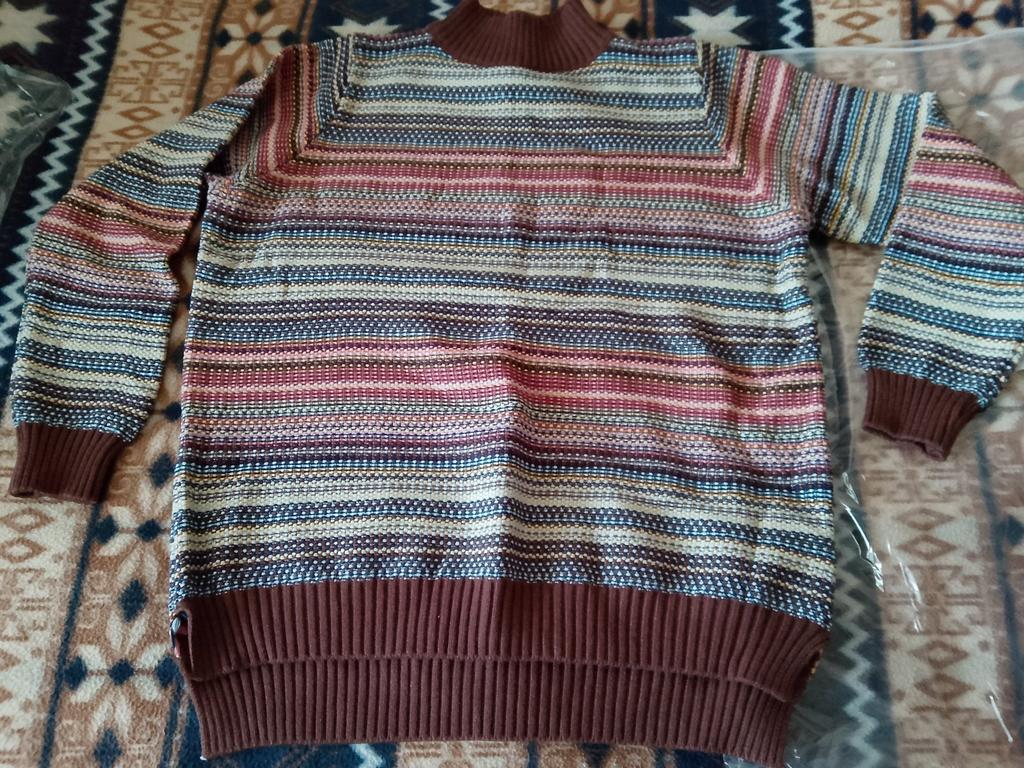 Half High Collar Pullover Sweater Women's Loose Striped Sweater Knitted Sweater
