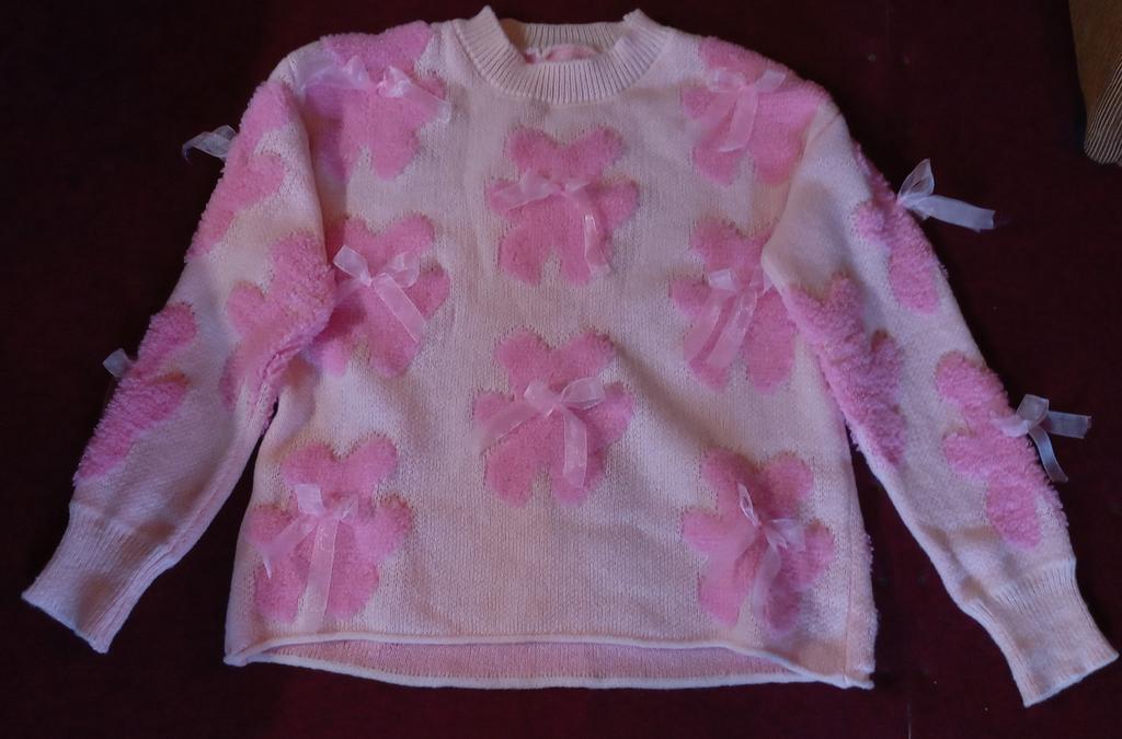 Women's Cute Bow Slouchy Pullover Sweater Fall/Winter Solid Loose Crewneck Long Sleeve Crochet Knitwear Going Out Top Jumper