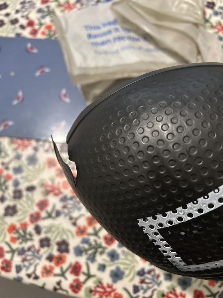Hello, We received the squid game mask dented and broken. Thank you for taking note of this and for informing us of the reimbursement procedures. I am attaching the photo. It doesn't surprise me that the mask is dented and chipped because it was just covered with plastic and when you know the transport conditions. cordially J.Blavoet