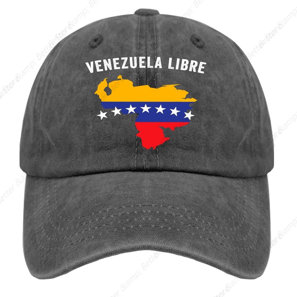 Venezuela Libre Venezuela Map 7 Stars Flag Baseball Cap Funny Hat Pigment Black Custom Hat Gifts for Mom Hiking Hats