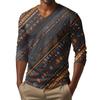 Men's V-neck Casual Fashion Printed Long-sleeved T-shirt Top