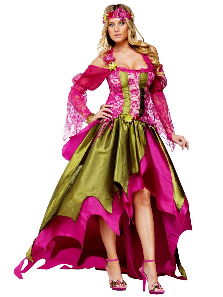 This medieval and Renaissance-inspired floral fairy dress comes with a dress and headband. The edges of the fabric are raw and unsewn. Please note that fraying, tears, scratches, and stains that do not interfere with wear are part of the product specifications.