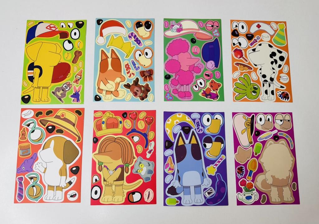 Bluey Puzzle Stickers: 8 Sheets/Pack - DIY Handmade, Phone Case Decoration, Waterproof