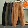 Johnature Naiste Vintage soojad Bloomers püksid Ühevärviline linane talve elastne vööpüksid pluss fliis Naiste pikad püksid