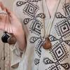 New Chinese Style Green Sandalwood Gourd Long Pendant Halterneck Necklace Female Retro Ethnic Style Niche Style Sweater Chain Ornament