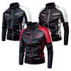 PU Leather Men's Men's Coat In Spring and Autumn New Stand-up Collar Motorcycle Suit Embroidered Color Matching Jacket Men