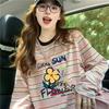 Letter Printed Striped Women's T-shirt Round Neck Minimalist Long Sleeved Pullover New Korean Loose Autumn Woman Top
