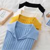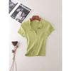 American Lapel Lemon Yellow Long Sleeves Knitwear Big Pit Strip Silm Short Sexy Deep V Pullover Tops