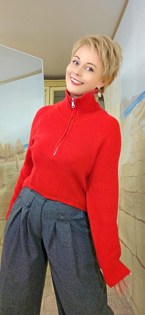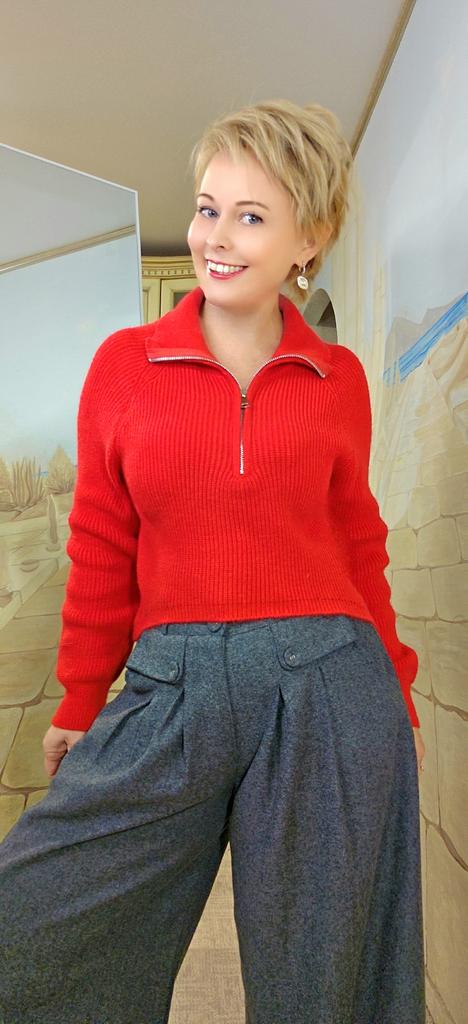 Fashion Autumn Winter Semi-turtleneck Zipper Women Knitted Sweater Long Sleeve Loose Short Tops New Solid Color Office Casual Simple Clothing