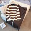 Lady Fashion Women Long Sleeve Split 2 Piece Set Casual Stripe Outfit Skirt