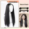 פאה רטרו לנשים עם אבני חן ושיער ארוך ישר, כיסוי חצי ראש בצורת U