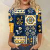 Women's Fashion Casual Round Neck Three-quarter Sleeve Retro Floral Print T-shirt Top