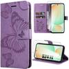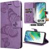 Coque de protection - Samsung - Galaxy S22 - Motif Papillon - Effet Cuir Violet - Support Téléphone
