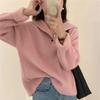Design sense solid color loose knitted sweater women wear fashionable retro big lapel sweater women autumn and winter lazy wind