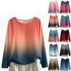 Women's Casual Long-sleeved Round Neck Gradient Cotton And Linen Top