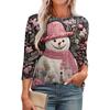 Maglietta da donna alla moda con scollo tondo, manica 3/4, stampata, casual, basic, plissettata