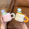 Creative Gradient Mug Flower Lid Water Cup High-value Ceramic Cup Souvenir Mother's Day Gift for Girls