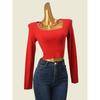 Fashion Style Sexy Sexy off-the-Shoulder Decorative Lace-up Knitwear Women's Clothing Spring & Fall Slim-Fit Short Long Sleeve Bottoming Shirt